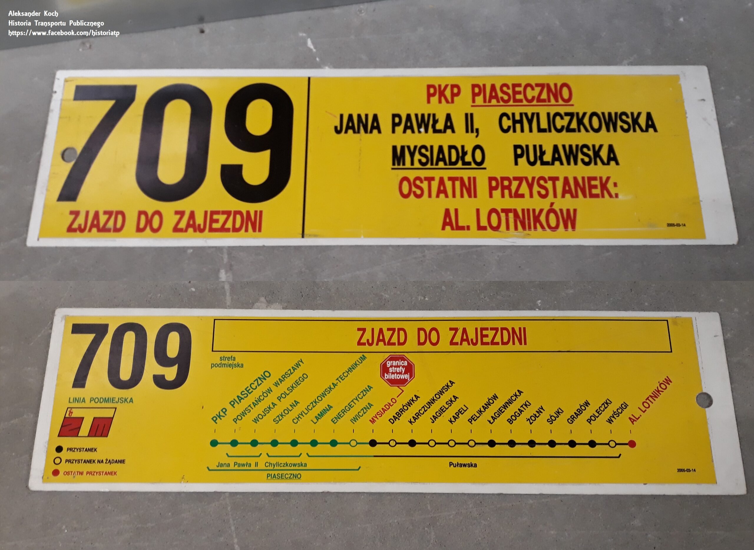 Przenosimy się na lewy brzeg Wisły. 1 września 1995 roku uruchomiono linię podmiejską „709”, łączącą stację metra Wilanowska z Piasecznem. To nie był debiut tego numeru – w latach 1985–1992 linia kursowała pomiędzy Zaciszem a Zielonką (od 1988 r. z Bródna-Podgrodzie).