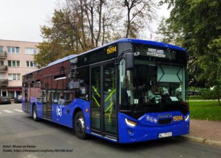… naszych dzisiejszych bohaterów napędza silnik Cummins ISB6.7E6 (w skrócie zapisywany jako Cummins 6.7) o pojemności 6700 cm3 oraz maksymalnej mocy 300 KM. Jednostka ta spełnia normę emisji spalin na poziomie Euro VI, czyli obecnie powszechnie stosowanej w przypadku autobusów z napędem konwencjonalnym. Całość zblokowana jest z automatyczną, VI-biegową (z nadbiegiem) przekładnią ZF Ecolife 6AP 1200B, która pozwala na zmniejszenie zużycia oleju napędowego podczas standardowej jazdy miejskiej (częste przyspieszanie na niskich biegach i hamowanie, etc.). Do autobusu prowadzą 3 pary dwuskrzydłowych drzwi otwieranych do wewnątrz w układzie 2-2-2 sterowane pneumatycznie. Pojazd wyposażony jest w funkcję tzw. „przyklęku” oraz w elektrycznie sterowaną rampę pozwalającą na wjazd wózkom inwalidzkim na pokład pojazdu. Ostatnią informacją techniczną o naszych dzisiejszych bohaterach, by nie zanudzić Was do końca, którą chcę Wam przekazać jest fakt, iż w autobusie zastosowano zbiornik paliwa o pojemności 300 l oraz zbiornik Ad-blue o pojemności 43 l.