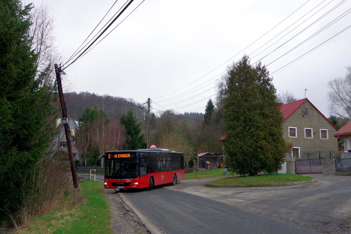 Pętla znajduje się w górnej części miejscowości, powyżej kościoła pw. św. Jana Chrzciciela. Jest jedną z mniejszych na sieci komunikacyjnej MZK. Dojazd jest bardzo wąski (bo droga, którą tam się jedzie, prowadzi właściwie donikąd – kończy się niedaleko szczytu Skopiec, u podnóża którego zlokalizowana jest pętla), a i pętla szeroka nie jest, nieprecyzyjny wyjazd może się skończyć się wpadnięciem do przydrożnego rowu. Nie przeszkadzało to jednak puszczać tutaj Ikarusów 280.26 czy – po przedłużeniu „dwójki” na Osiedle Orle – „deskorolek” Volvo B10BLE 6×2. Infrastruktura pasażerska przez lata składała się ze starej, murowanej wiaty, jeszcze pokrytej eternitem. Chodnika nie było. Teraz jest nieco inaczej, na pętli stoi drewniana wiata, jak niemal wszędzie w Gminie Janowice Wielkie.