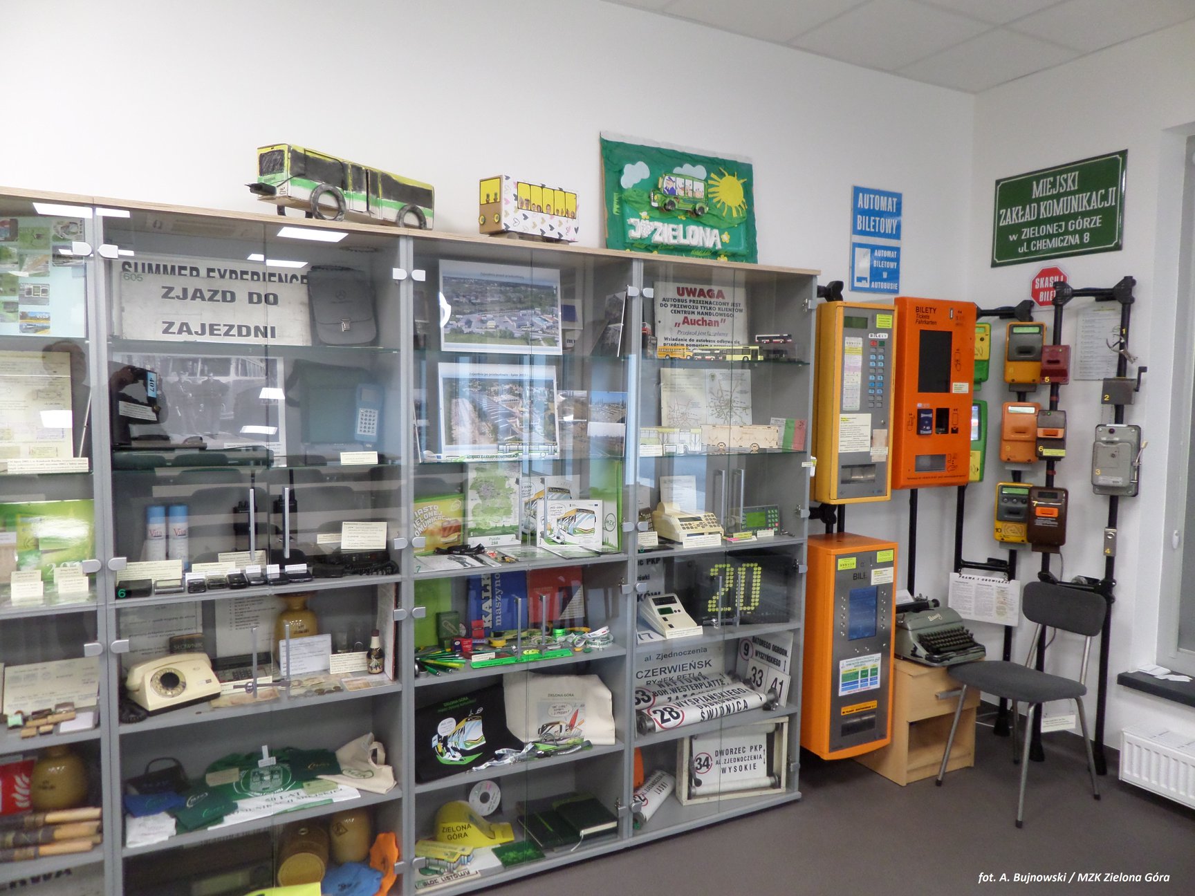 Mając już uzbieraną garstkę eksponatów od starych biletów, czapek kierowców po stare kasowniki postanawia postawić w budynku biurowym trzy gabloty by wyeksponować swoje zbiory dla innych zainteresowanych oraz odwiedzających firmę. W czerwcu 2004 r. MZK Zielona Góra, świętuje 50-rocznicę działalności. Powstaje pierwsza książka ze zdjęciami zgromadzonych zbiorów. 10 lat później, w 60-rocznicę działalności powstaje kolejna publikacja o historii spółki.”