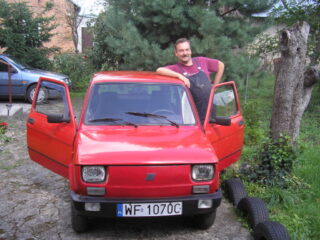 Mam miłe wspomnienia z praktyk zawodowych, które jako młody chłopak, odbywałem w warszawskiej FSO. Pomyślałem sobie, że byłoby ciekawie gdyby okazało się, że auto, które kupię, już kiedyś przeszło przez moje ręce. Numer VIN, wiele nie powie, ale tajemnicze cyferki na tabliczce znamionowej już tak. Ja się na tym nie znam, więc zrobiłem zdjęcie tabliczki znamionowej i pokazałem je komuś kto umie to odczytać. Okazało się, że Fiat zjechał z taśmy produkcyjnej zakładu montażu nr 1, czyli tego w którym pracowałem, w dniu kiedy byłem w pracy. Pozostaje tylko kwestia, czy narodził się na mojej zmianie. Miałem jakieś wewnętrzne przekonanie, że tak. Kupiłem go. Okazało się, że był to dobry wybór, bo samochód był i jest wolny od korozji, był pojazdem jeżdżącym, jedynie wyglądał niezbyt dobrze. Prace przy nim były więc zupełnie inne niż przy maluszku. Malucha musiałem odbudować właściwie od podstaw, a przy dużym to właściwie kosmetyka i wymiana praktycznie całego przedniego zawieszenia. Poprzedni właściciel wjechał w jakiś kamień i auto straciło geometrię. Szybko poszło, Fiat jeździł i wyglądał jak złoto, więc postanowiłam że może uda się połączyć Fiata z moją drugą pasją, czyli rajdami. Oczywiście nie było i nigdy nie będzie mnie stać na to, żeby zbudować prawdziwą rajdówkę, ale na jakieś udoskonalenia pochodzące z rajdowych Fiatów mogę sobie pozwolić. Lata lecą, samochód jest ze mną już 15 lat, a ja cały czas mam nowe pomysły na niego i staram się je wprowadzać.