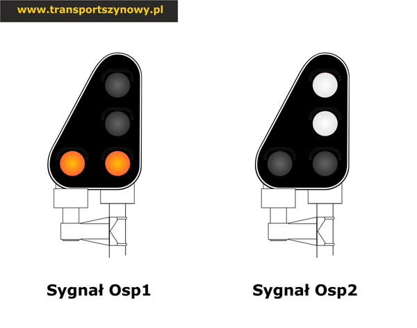 | Osp2 | Urządzenia sygnalizacji na przejeździe, do którego tarcza się odnosi, są sprawne – jazda z maksymalną dozwoloną prędkością |